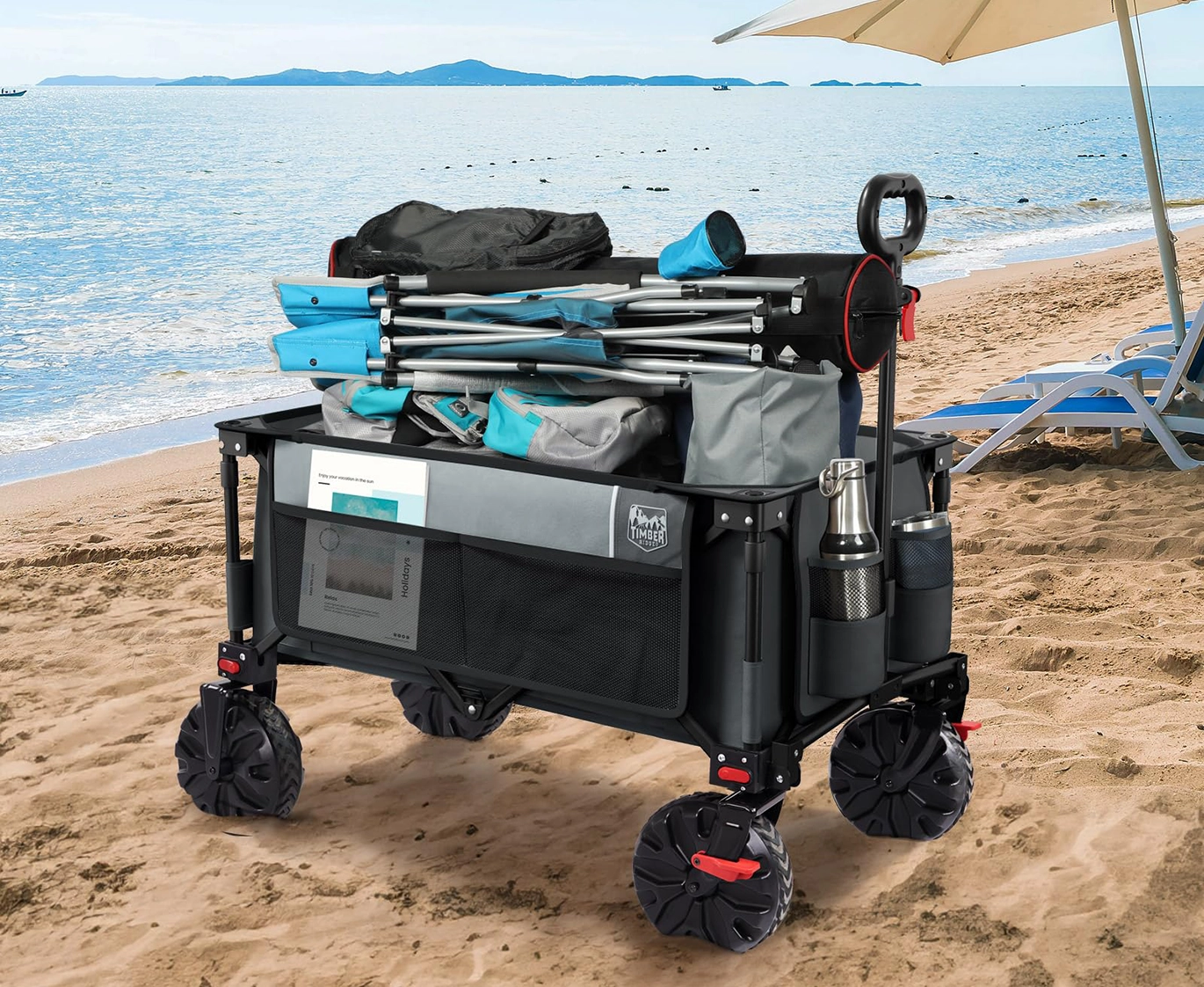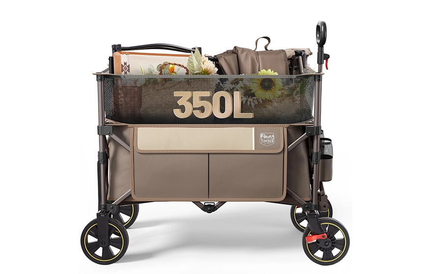 This durable folding wagon features all-terrain wheels, brakes, and ample storage—perfect for camping, gardening, shopping, and outdoor adventures.