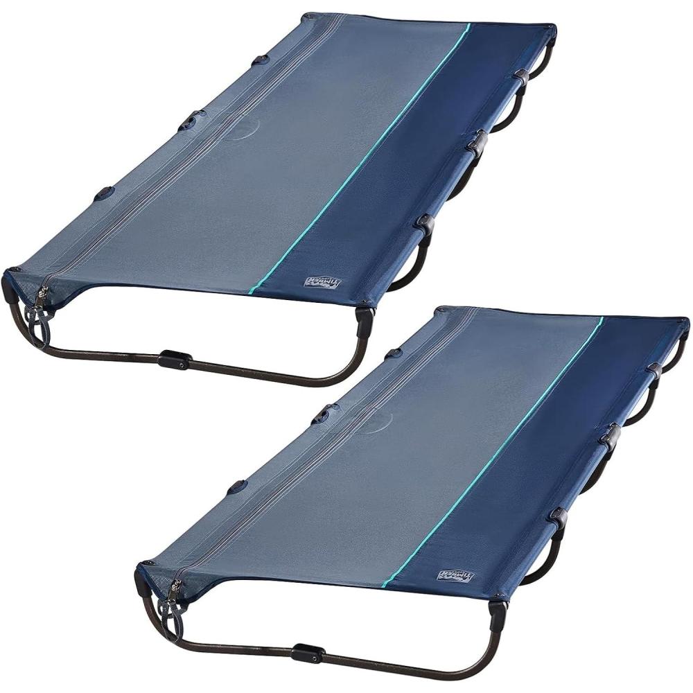 imageTIMBER RIDGE 20Second Quick SetUp Camping Cot Lightweight Aluminum Folding Cot Low Profile with Zipper Closure Portable Carry Bag for Camping Travel and Outdoors Support up to 225lbs GreenBlue2 Set