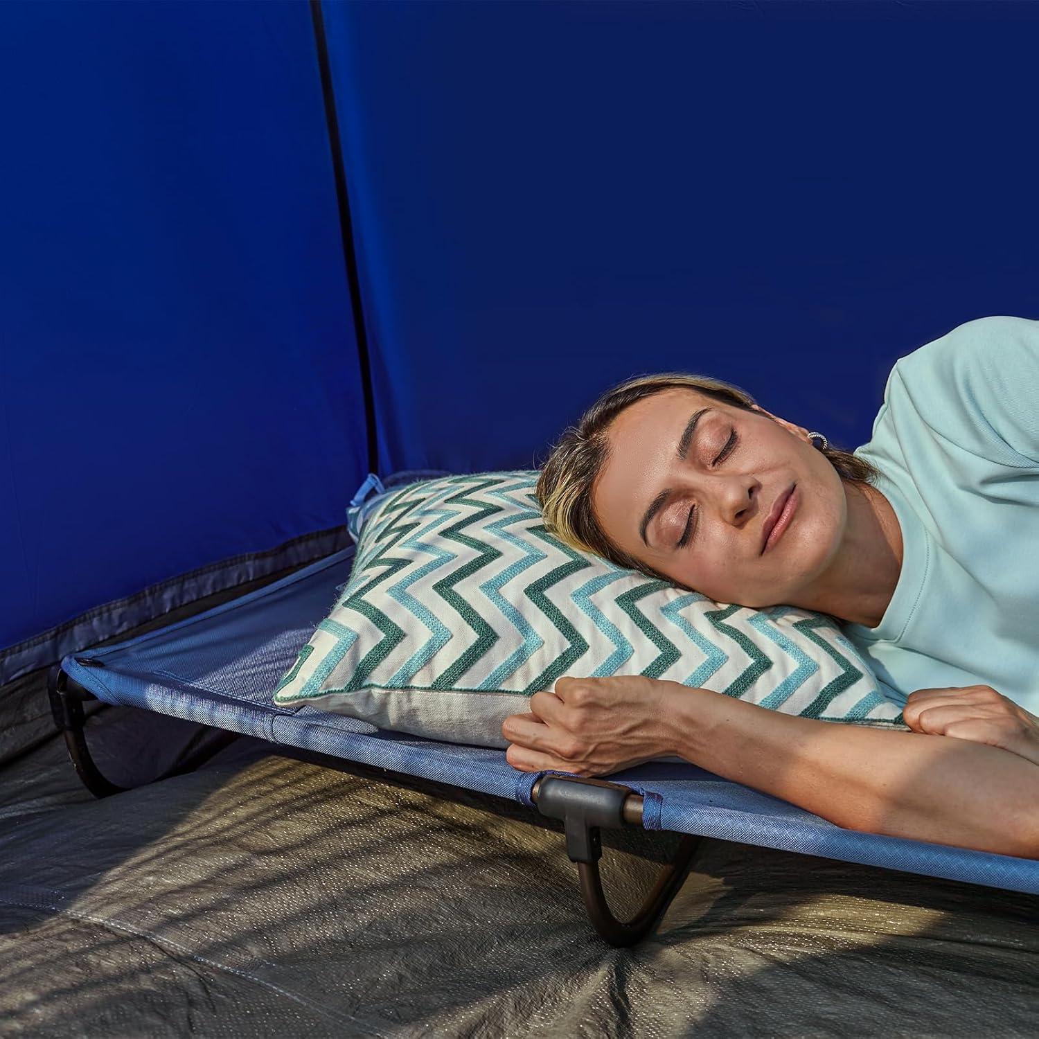 imageTIMBER RIDGE 20Second Quick SetUp Camping Cot Lightweight Aluminum Folding Cot Low Profile with Zipper Closure Portable Carry Bag for Camping Travel and Outdoors Support up to 225lbs GreenBlue