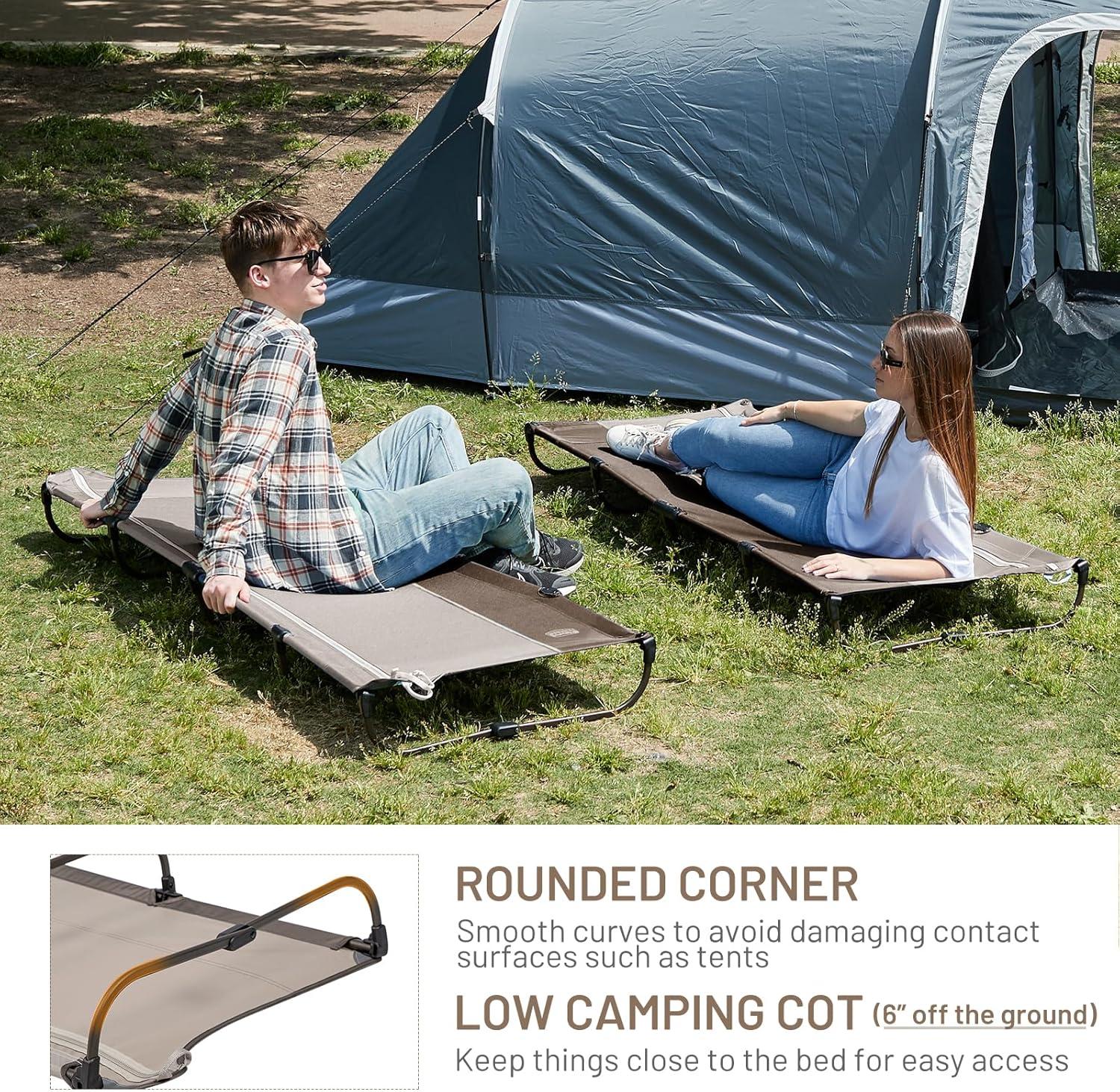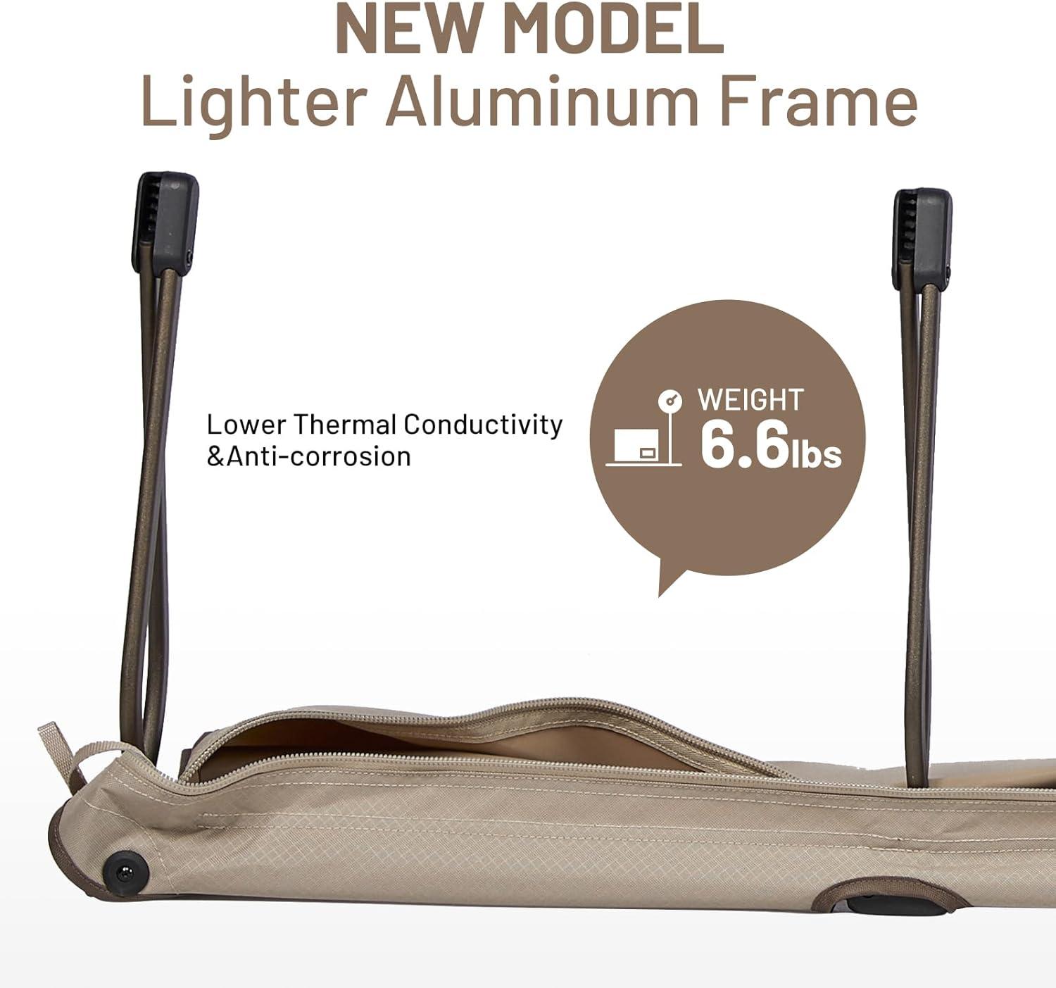 LIGHTWEIGHT & HEAVY DUTY: This folding cot is made with 20mm*10mm aluminum pipes, only weights 6.6lbs. U-shape sturdy structure to distribute the weight well and prevents poking through the tent floor, supports up to 225lbs. (The maximum weight of our cot is 225 pounds, so sorry that some products TAG marked wrong)