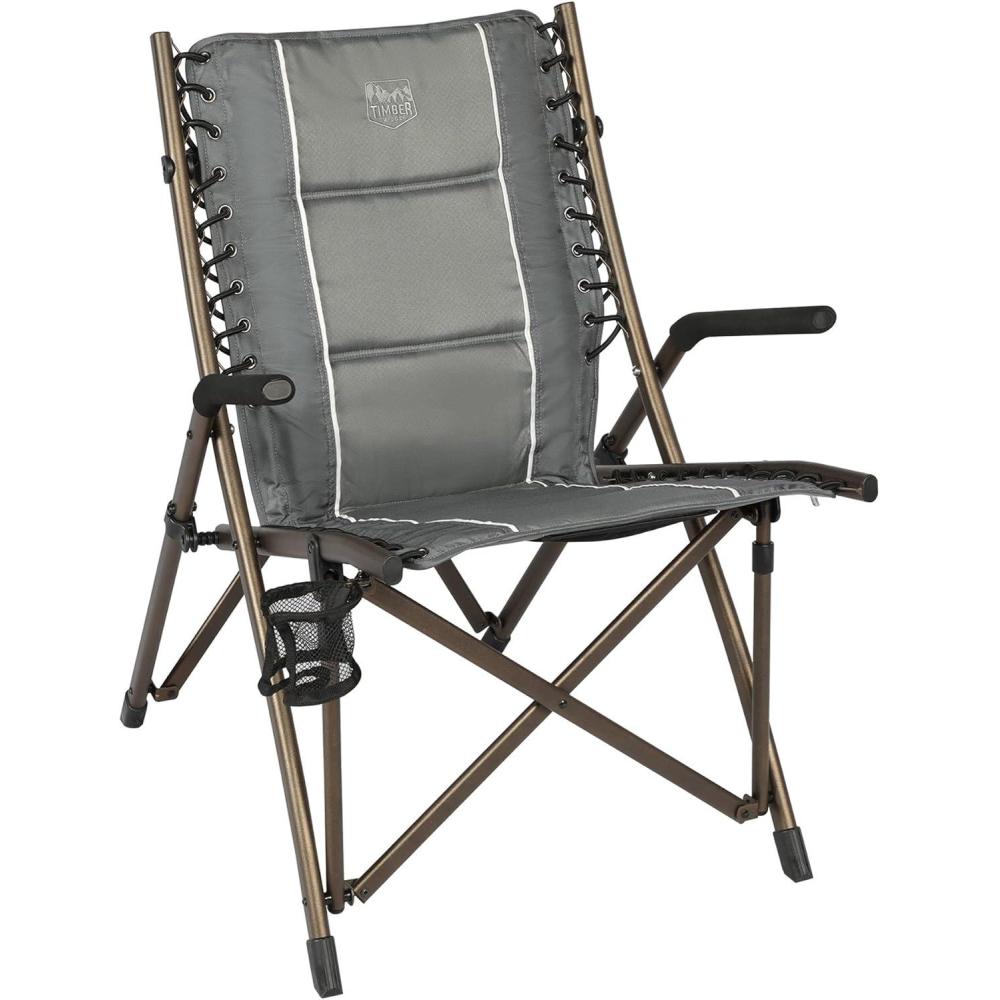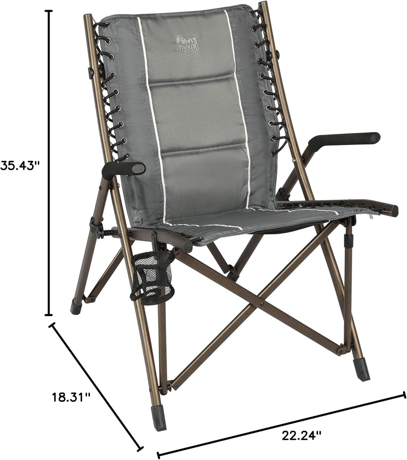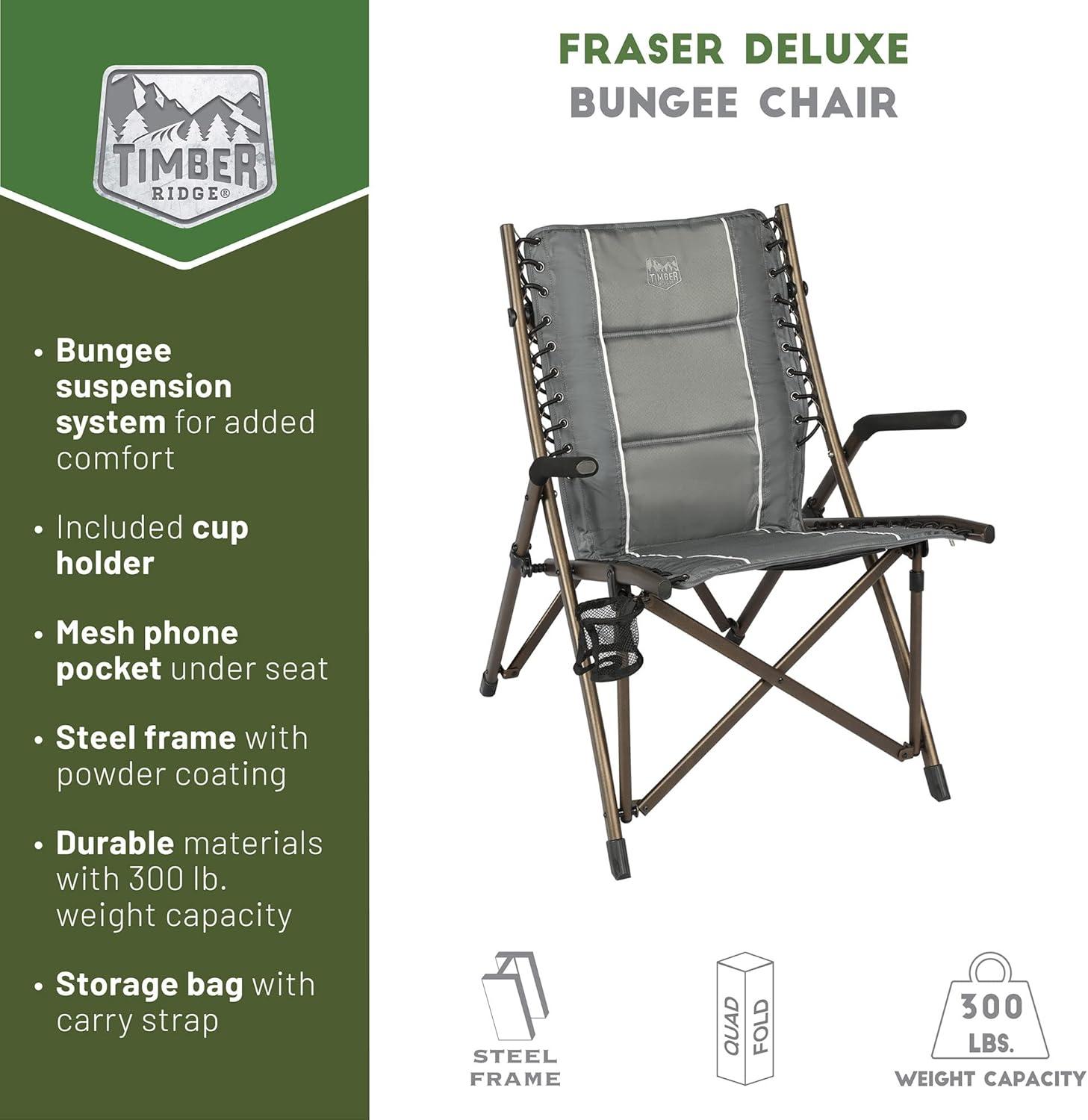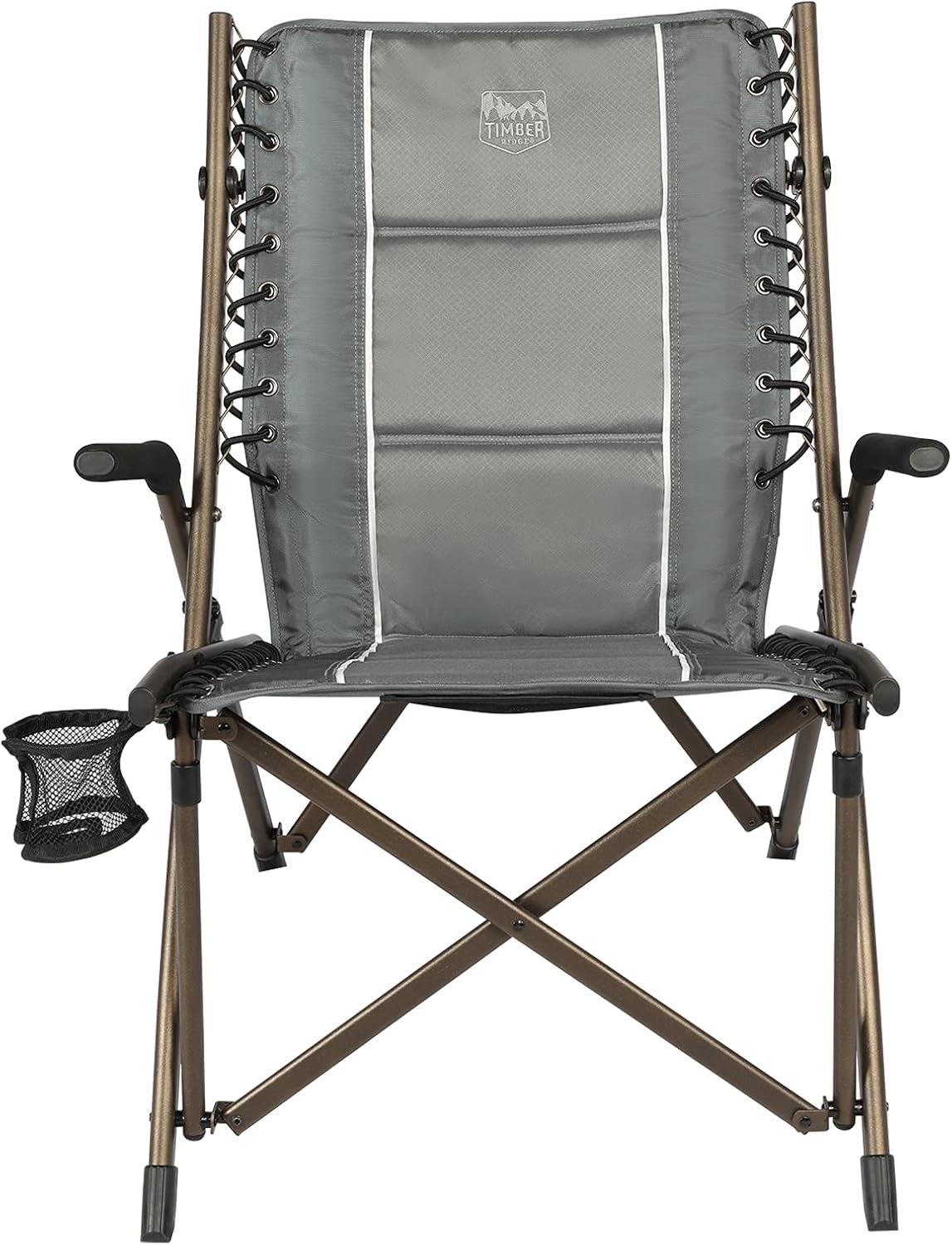 OUTDOOR BUNGEE CHAIR: This TIMBER RIDGE camping chair with padded seat, hard armrests, cup holder and carry bag is the ideal lounge chair for camping, patio or sideline sports. It supports 300 lbs