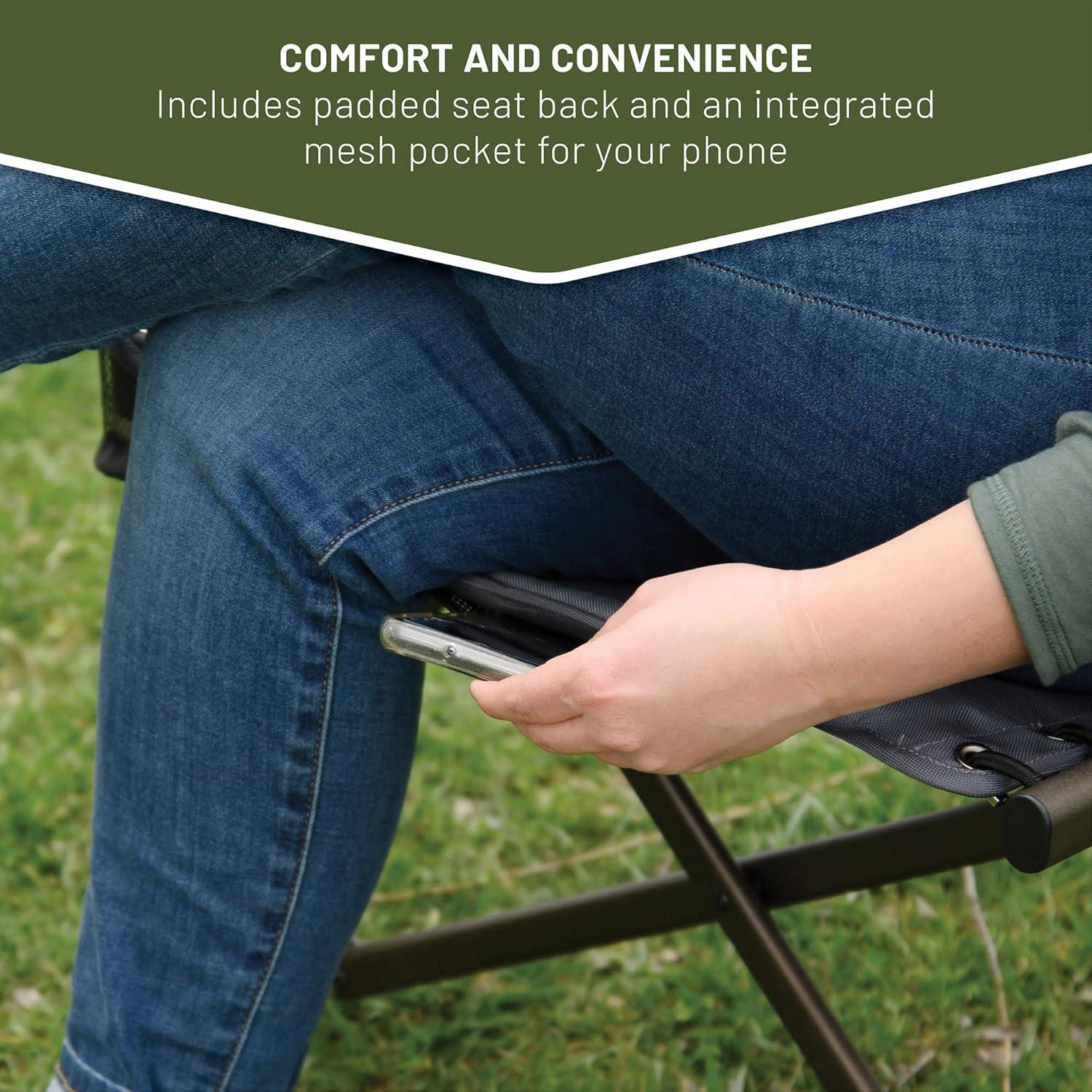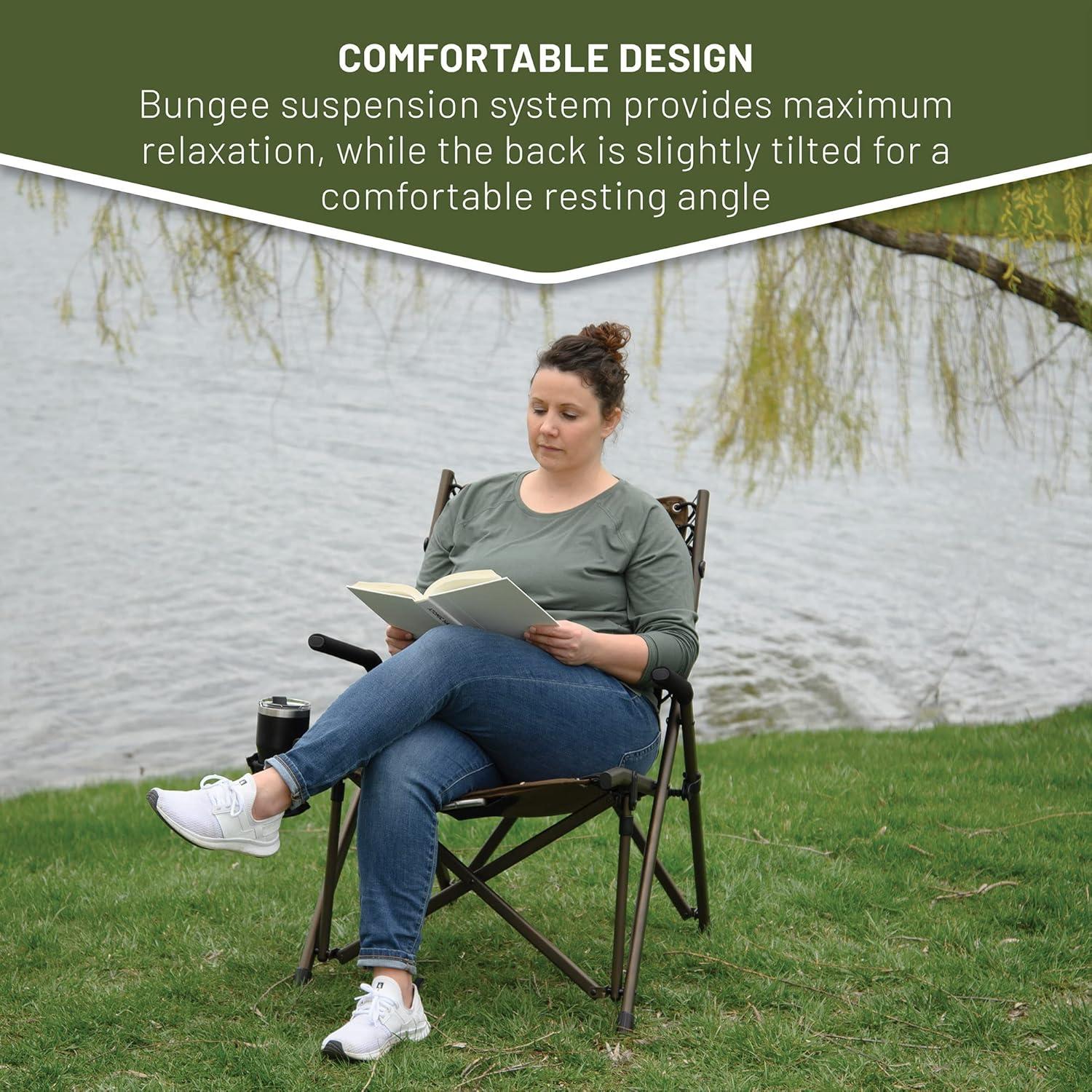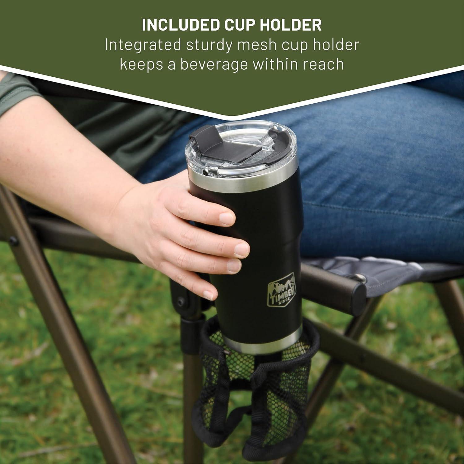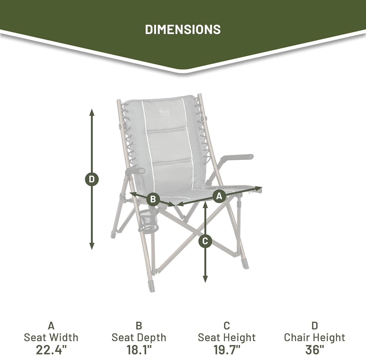OUTDOOR BUNGEE CHAIR: This TIMBER RIDGE camping chair with padded seat, hard armrests, cup holder and carry bag is the ideal lounge chair for camping, patio or sideline sports. It supports 300 lbs