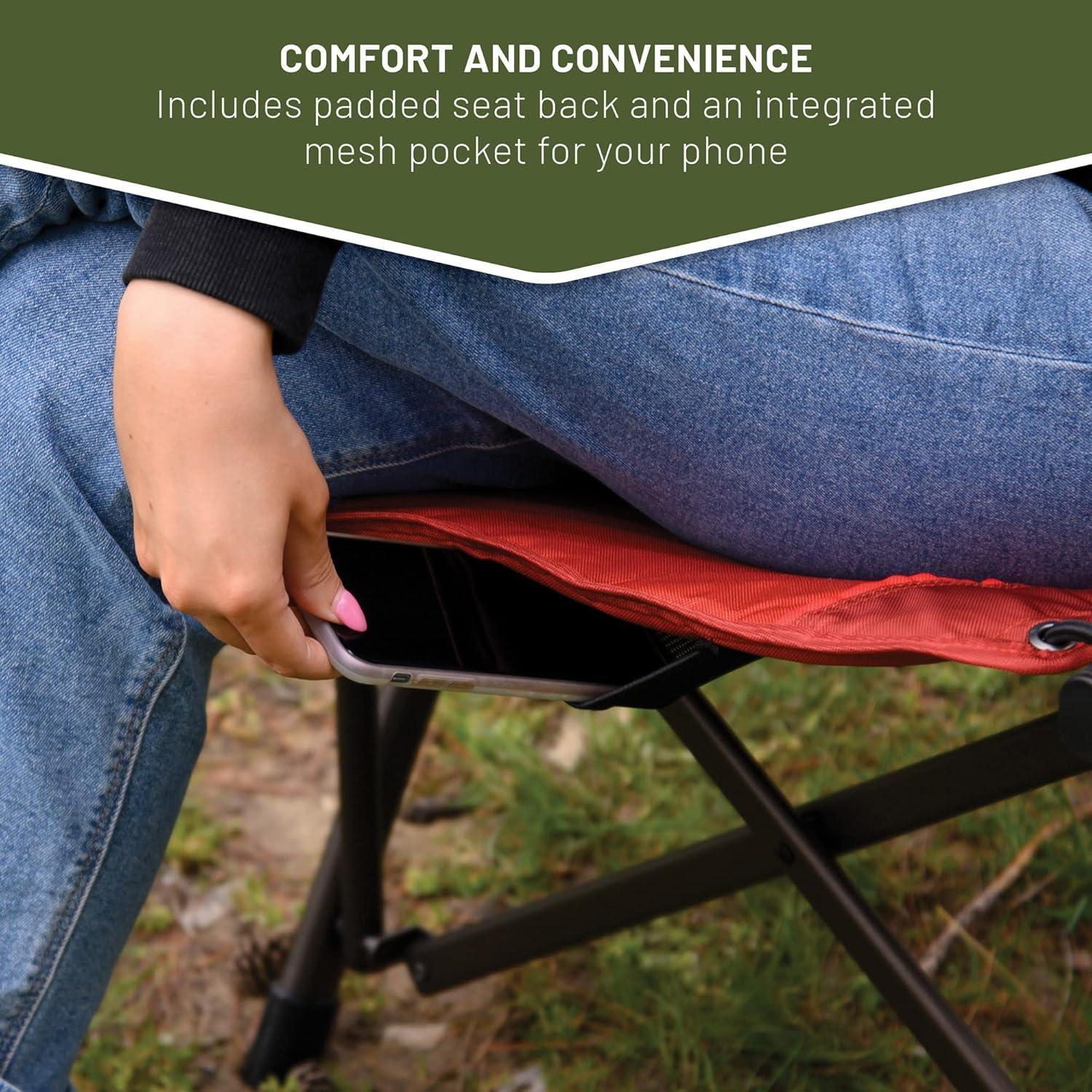 imageTIMBER RIDGE Bungee Folding Camping Chairs for Adults Heavy Duty Collapsible Padded Chair with Armrests Cup Holder Foldable Outdoor Lounge Chairs for Beach Fishing Lawn Supports 300 lbs RedRed
