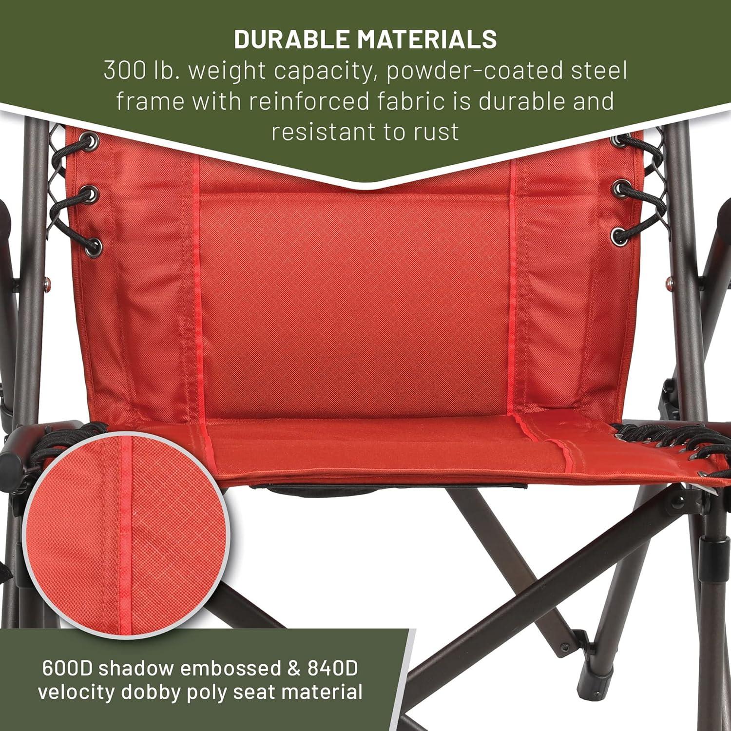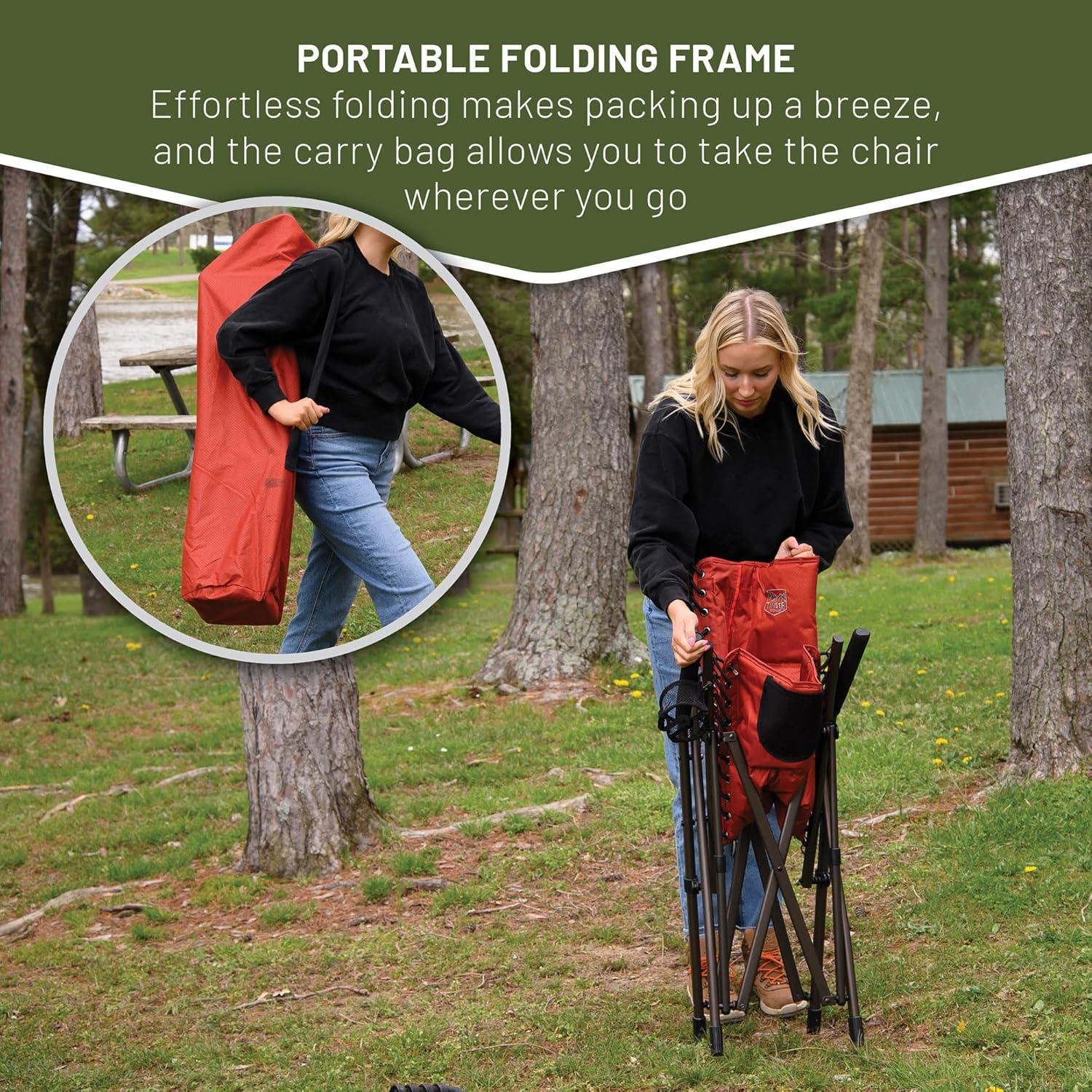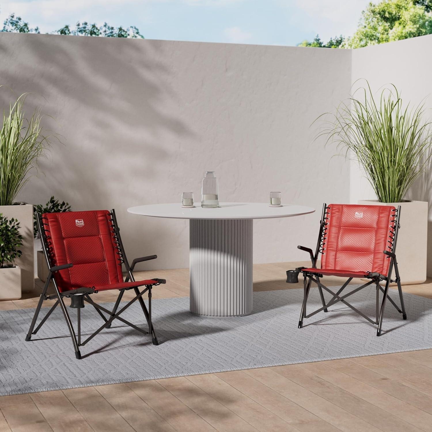 TIMBER RIDGE Bungee Folding Camping Chairs for Adults, Heavy Duty Collapsible Padded Chair with Armrests Cup Holder, Foldable Outdoor Lounge Chairs for Beach, Fishing, Lawn, Supports 300 lbs, Red(Red)