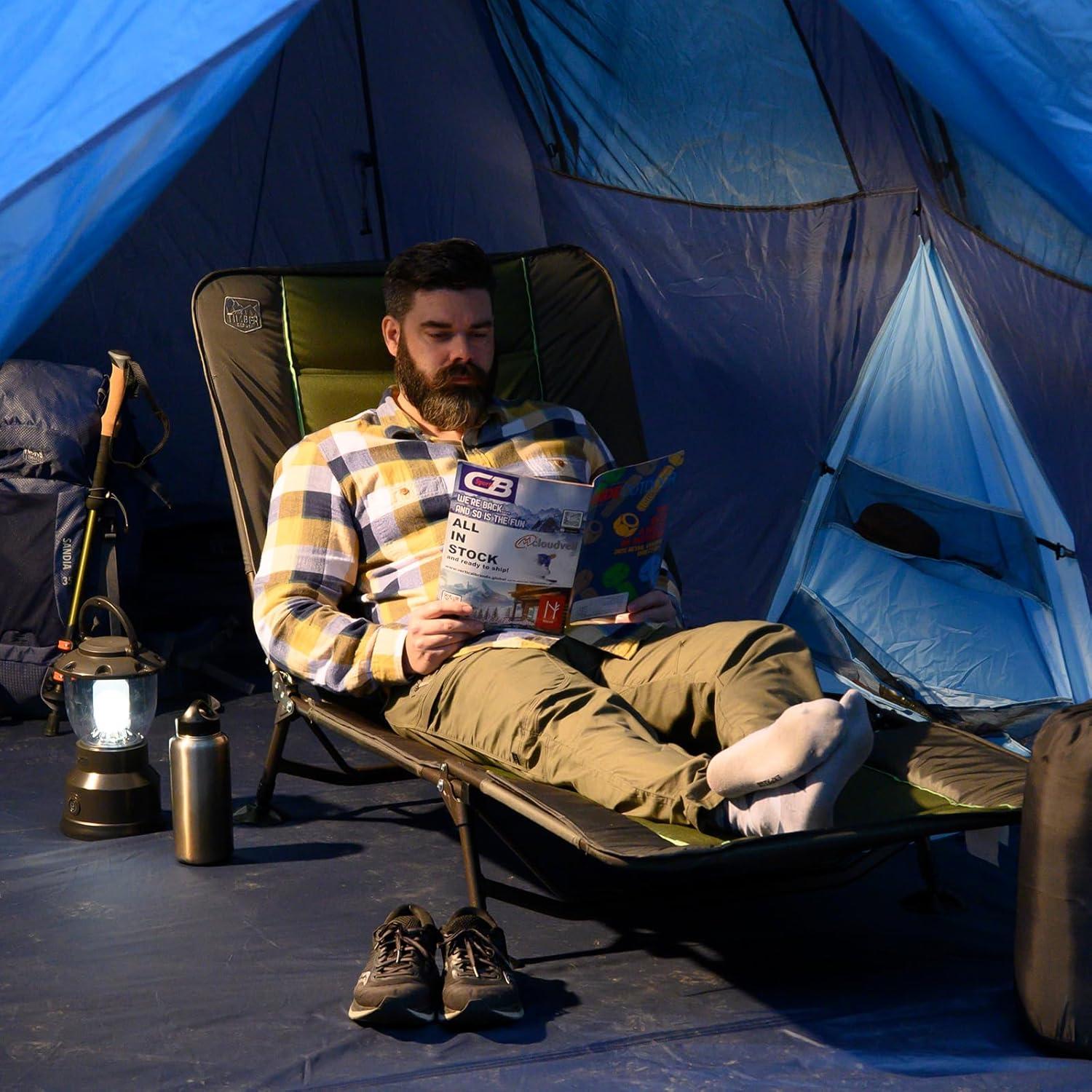 ULTIMATE COMFORT: With a comfortable mattress and 0°~180° adjustable backrest, this camping cot allows you to find the perfect position for reading or sleeping, providing ultimate comfort for the travel