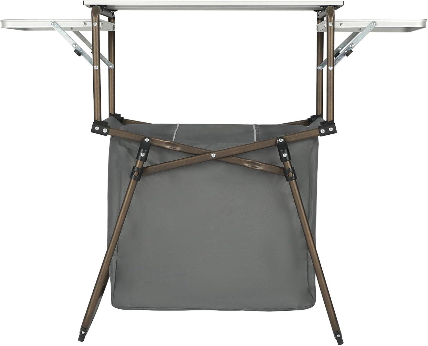 With an under-table storage pantry hanging from the steel frame, you can house cookware, dishware, or utensils in a secure and clean place, well within your reach. When not in use, this portable table can be folded up and go into storage or be carried to your next campsite in the included carry case with comfortable handles for your convenience.
