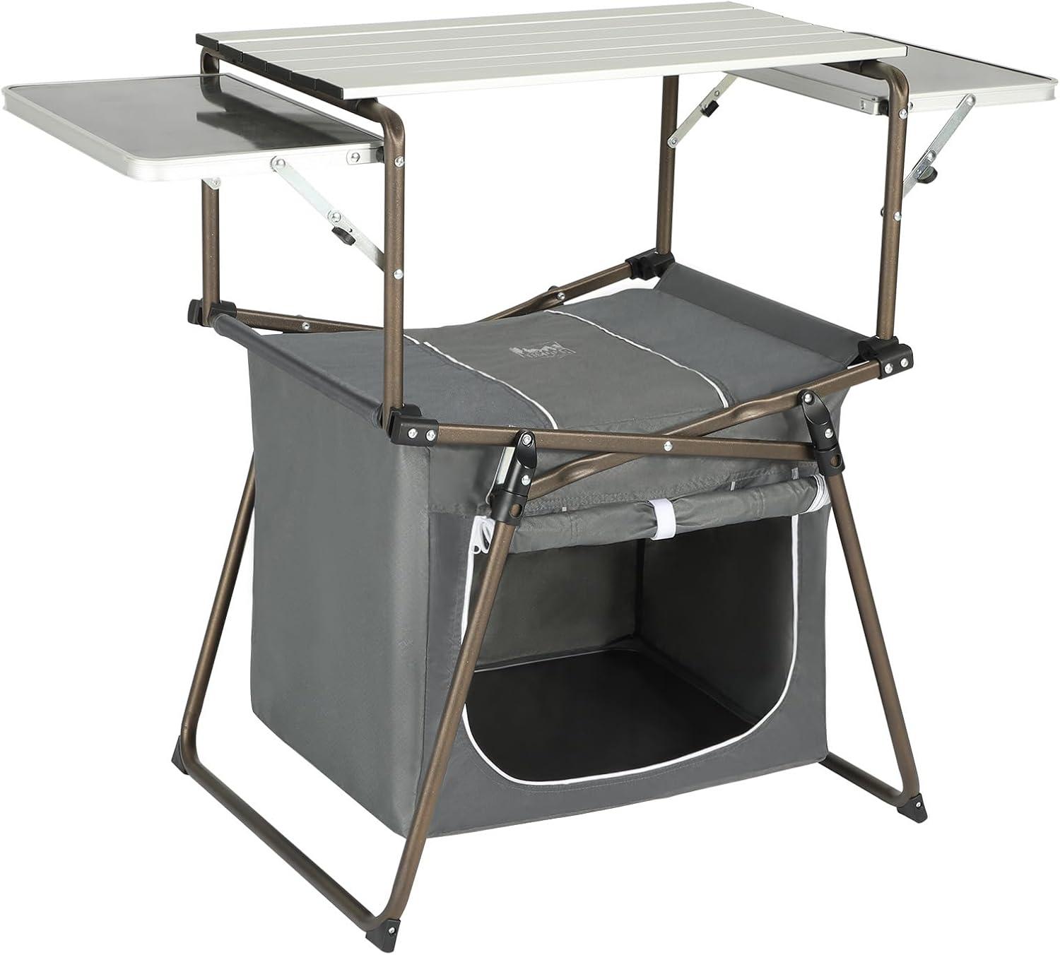 TIMBER RIDGE Outdoor Folding Camping Kitchen Table, Lightweight Portable Aluminum Cooking Table with Storage and Carry Bag, Camp Cook Station, Foldable Grill Table for BBQ, Picnic, Backyard, Brown(Grey)