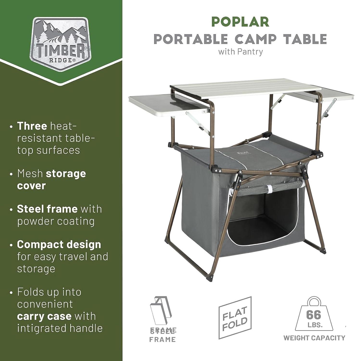 For a user-friendly camping table that you can bring anywhere, the Timber Ridge Poplar Portable Camp Table has everything the surface you need for a successful outing.
