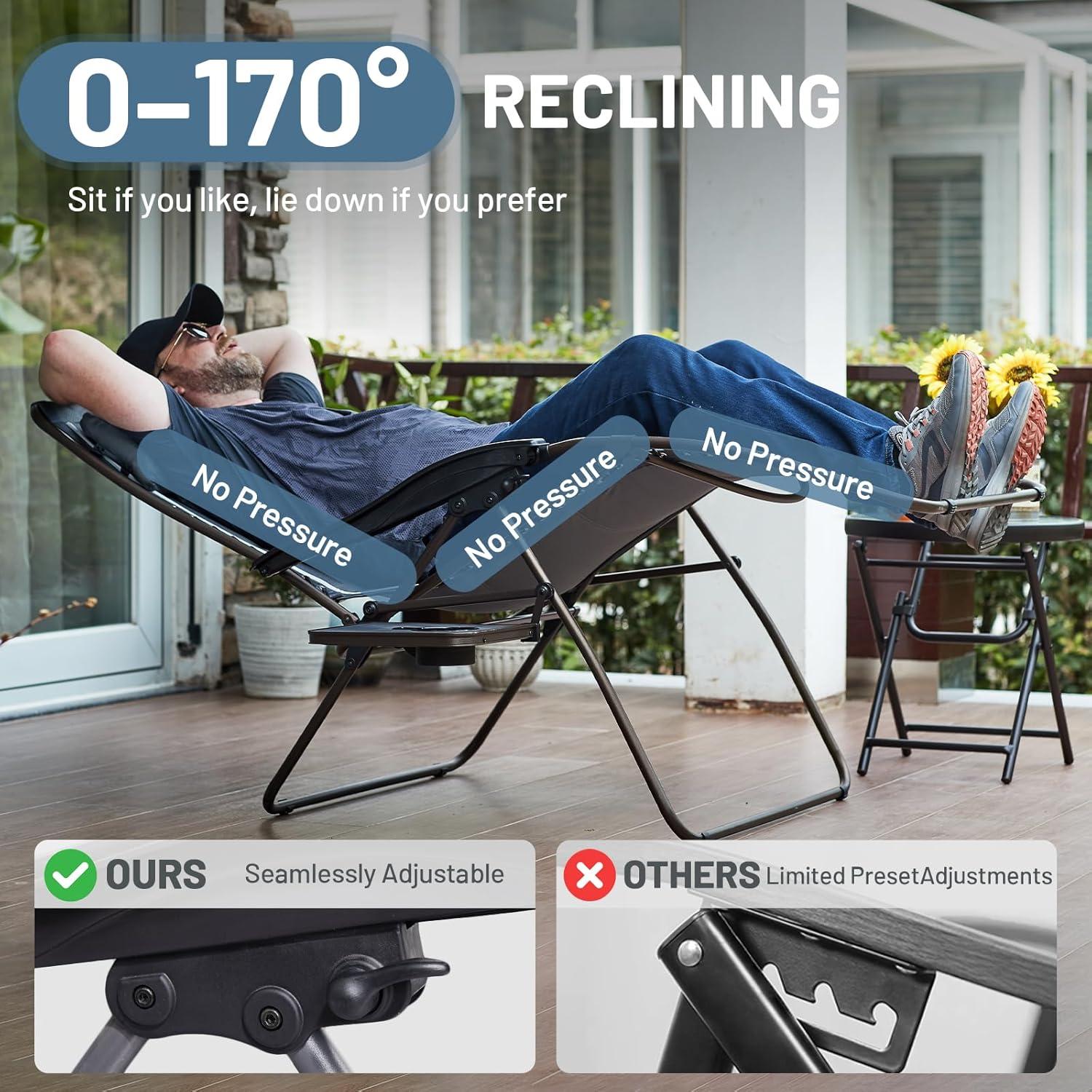 TIMBER RIDGE Oversized Zero Gravity Chair, 33In Wide XXL Zero Gravity Reclining Chair with Side Table, Full Padded Lounge Chair for Outdoor Camping Patio Lawn, Heavy Duty Supports 500lbs, Blue-1 Pack(Grey-1 Pack)