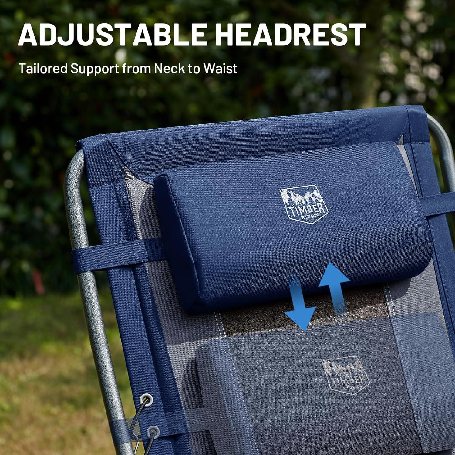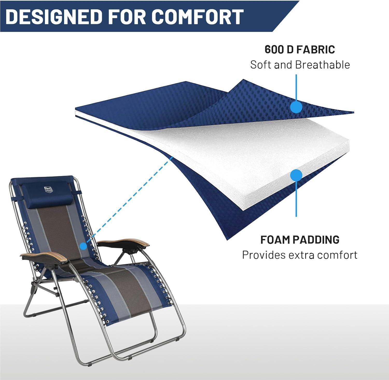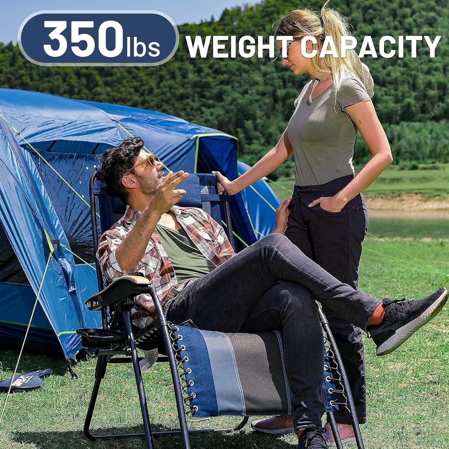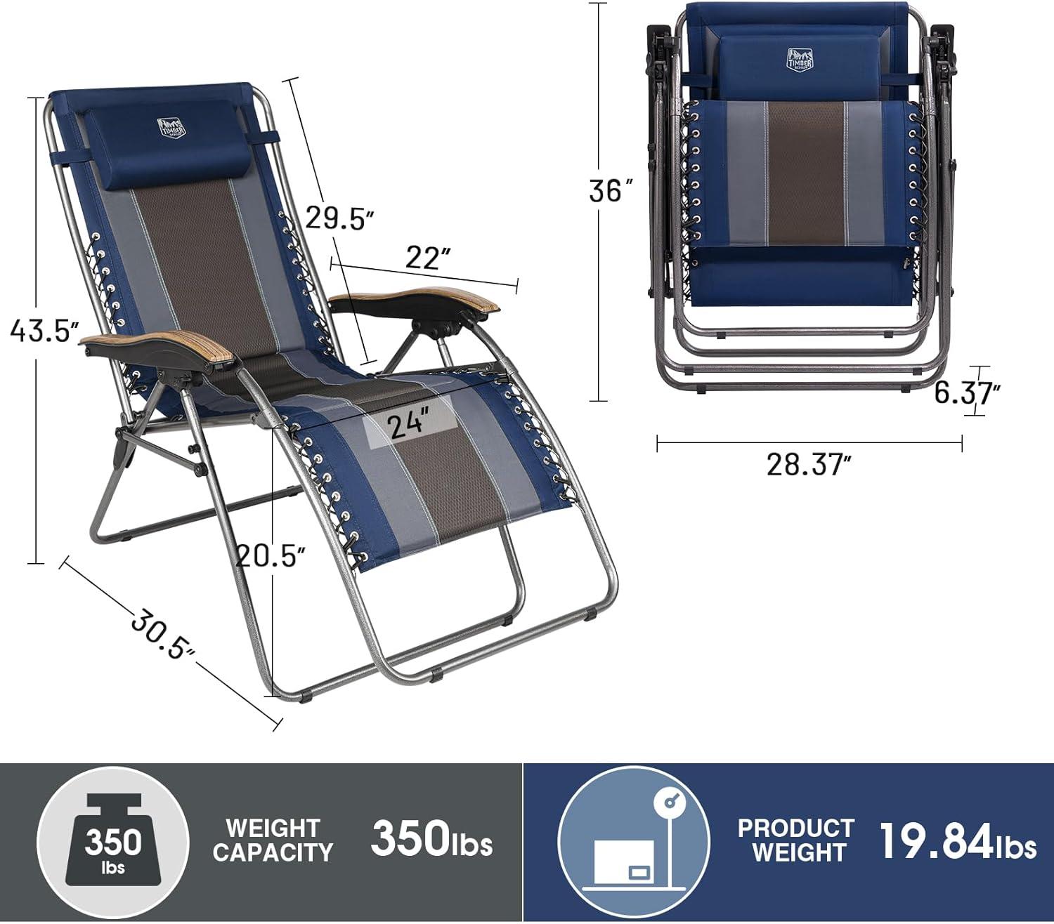 TIMBER RIDGE Oversized Zero Gravity Chair, Padded Reclining Lounge Chair with Adjustable Headrest & Cup Holder, Heavy Duty Support 350 lbs, Foldable for Camping, Lawn, Outdoor & Indoor(Blue-1 Pack)