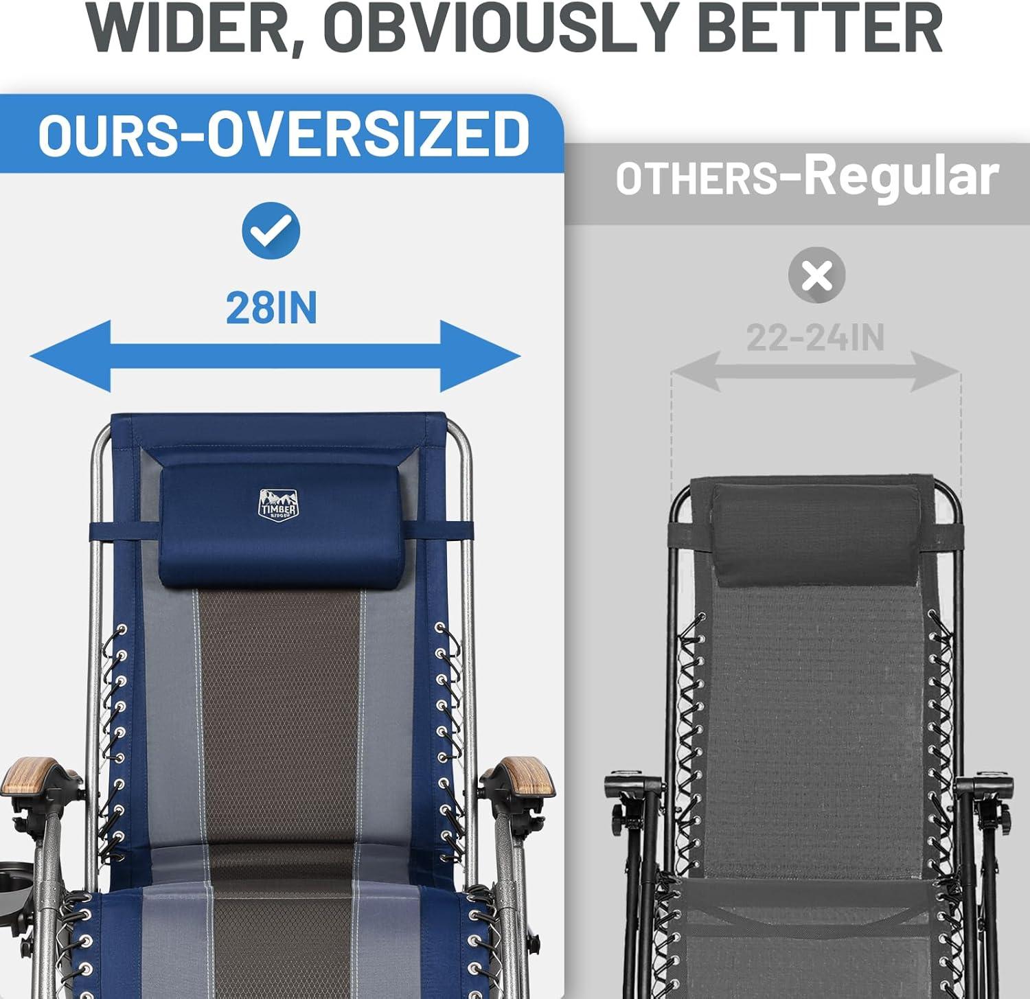 TIMBER RIDGE Oversized Zero Gravity Chair, 33In Wide XXL Zero Gravity Reclining Chair with Side Table, Full Padded Lounge Chair for Outdoor Camping Patio Lawn, Heavy Duty Supports 500lbs, Blue-1 Pack(Grey-2 Pack)