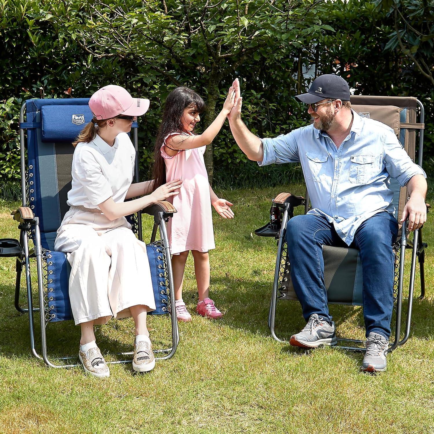 imageTIMBER RIDGE Oversized Zero Gravity Chair Padded Reclining Lounge Chair with Adjustable Headrest ampamp Cup Holder Heavy Duty Support 350 lbs Foldable for Camping Lawn Outdoor ampamp IndoorBlue1 Pack