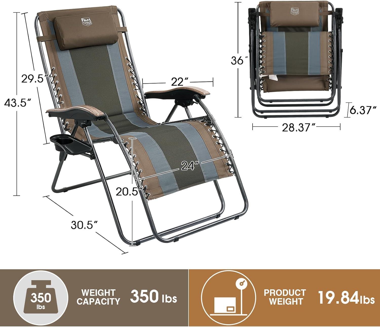 TIMBER RIDGE Oversized Zero Gravity Chair, Padded Reclining Lounge Chair with Adjustable Headrest & Cup Holder, Heavy Duty Support 350 lbs, Foldable for Camping, Lawn, Outdoor & Indoor(Brown-1 Pack)