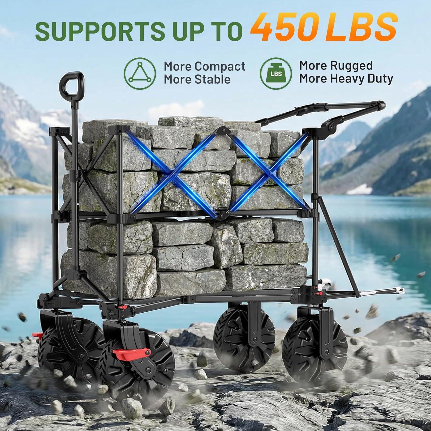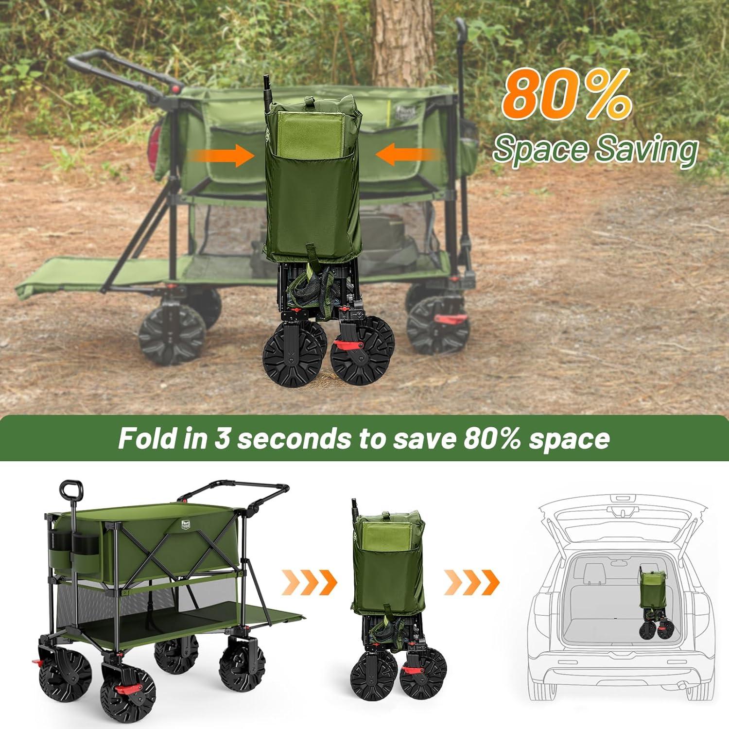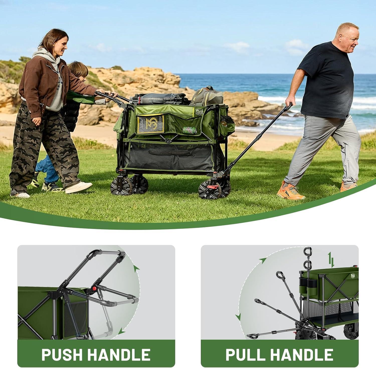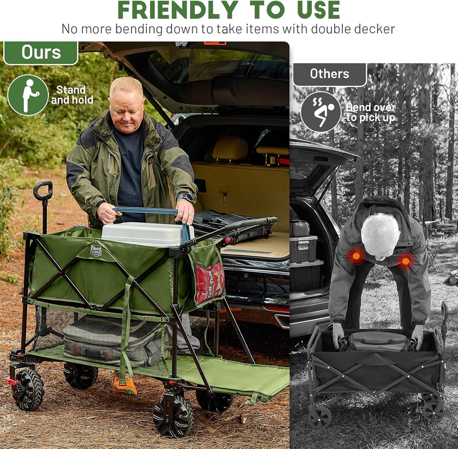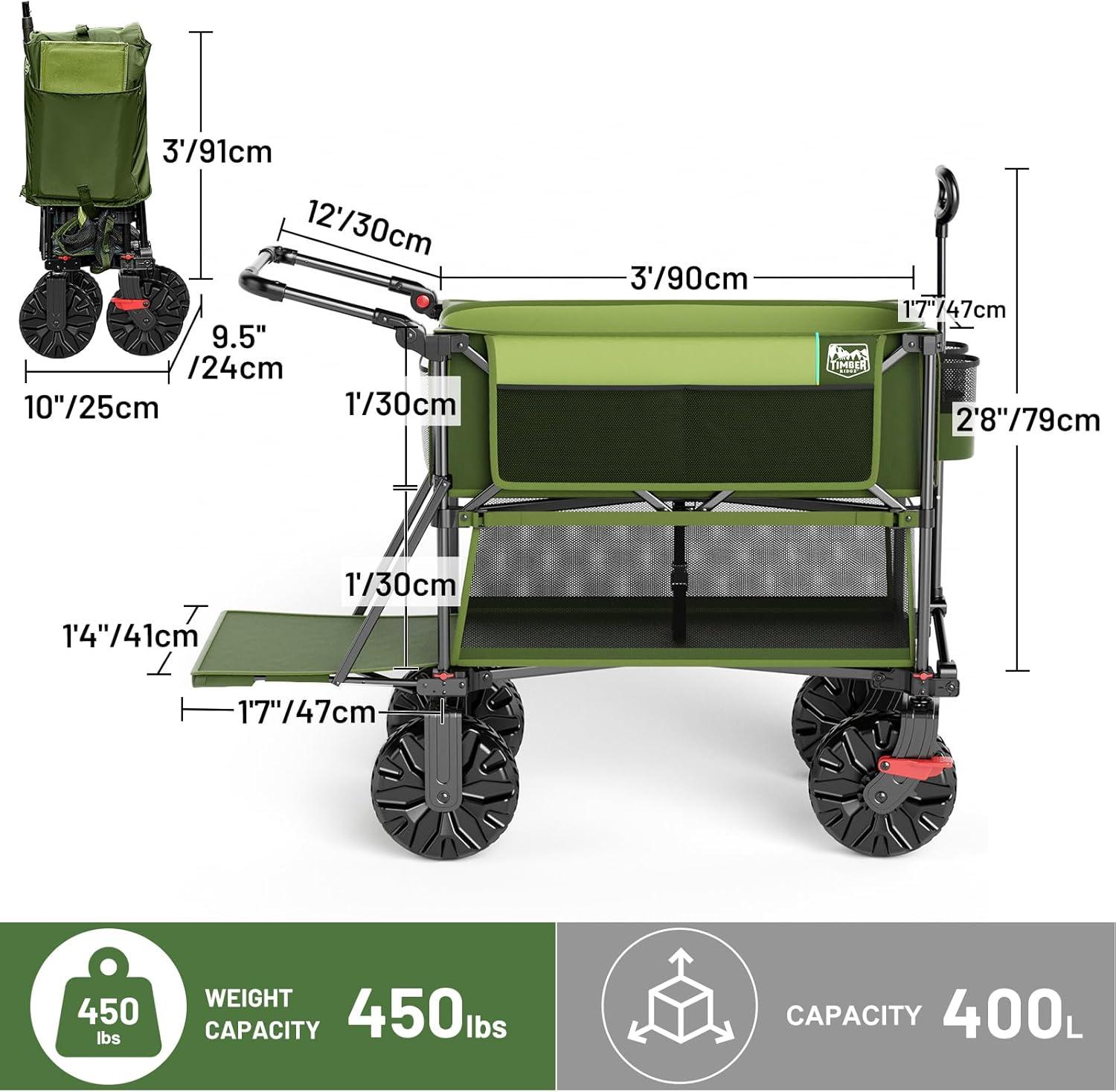 HIGH-CAPACITY DOUBLE-DECKER WAGON: Carry everything in one trip with 400L volume and 450lb load capacity. This heavy duty wagon wagon fits canopies, coolers, chairs, and all your sports gear