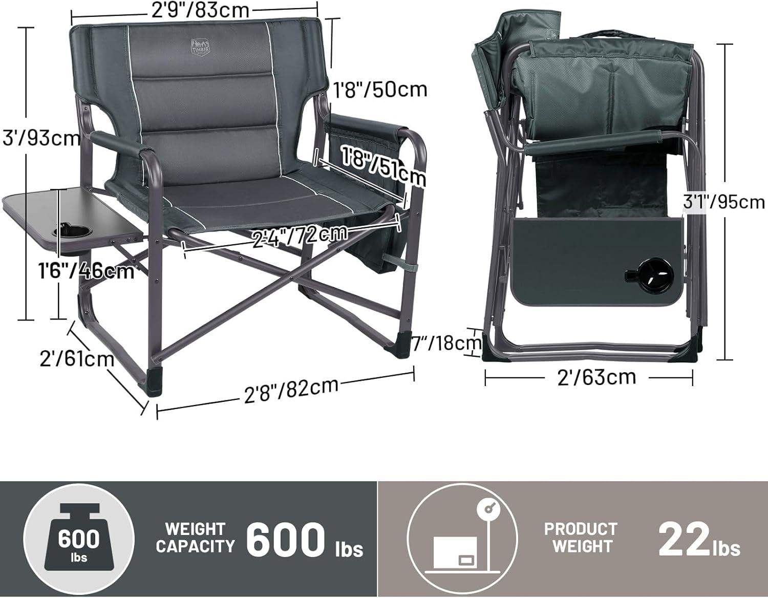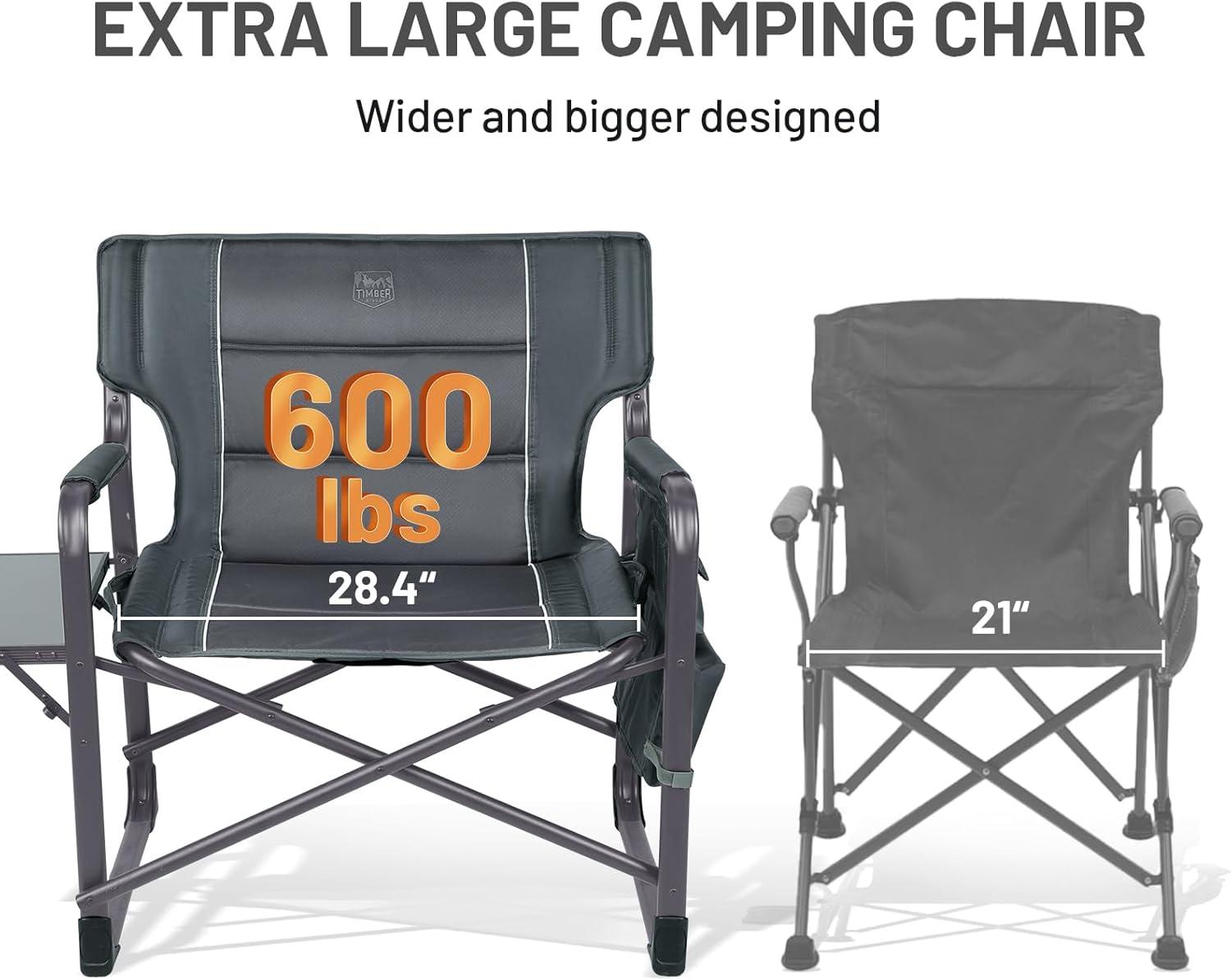 TIMBER RIDGE XXL Directors Chair, 600lbs Capacity Heavy Duty Folding Camping Chair with Side Table & Insulated Pocket, Oversized Portable Chair with Carry Strap